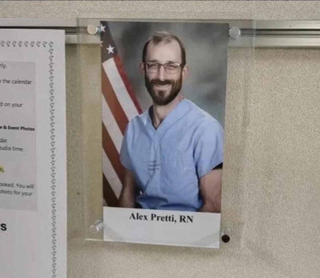 The next day, Alex Pretti, a 37-year-old VA nurse who spent his life helping people, was murdered by the ICE-gestapo while helping someone. As with Renee Good, it’s apparent from multiple video angles that Pretti was not posing any threat before being executed. As with Renee Good, the Trump regime reflexively began spreading lies and propaganda and covering for their gestapo.